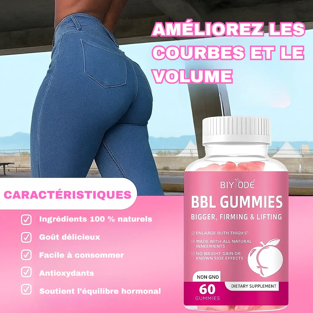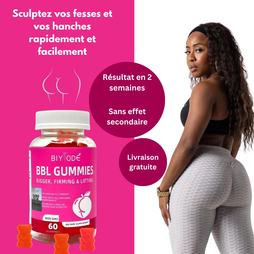 Envie de hanches généreuses et de fesses plus rondes, naturellement ? Les BBL Gummies sont le complément alimentaire numéro 1 pour sculpter ta silhouette et amplifier tes formes. Formulés à base de plantes puissantes comme le fenugrec, l’igname sauvage ou le dong quai, les BBL Gummies favorisent l’équilibre hormonal et stimulent le développement naturel des fesses, des hanches et de la poitrine.