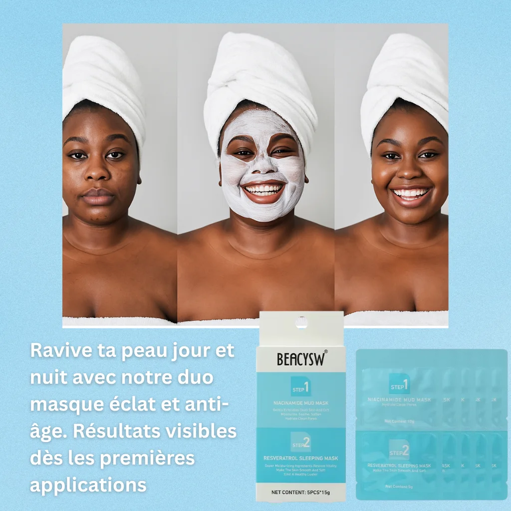 Kit Beauté – Masque à la Niacina mide + Masque de Nuit au Resvératrol – BEACYSW ✨